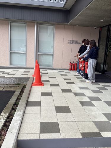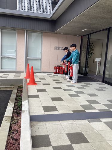 当日は、避難訓練に加え、消火器の使用方法の確認および体験、防災に関する動画視聴を行い、災害発生時に必要な行動について理解を深めました。実際に消火器を操作することで、初期消火の重要性や正しい使用方法を体感的に学ぶ機会となりました。